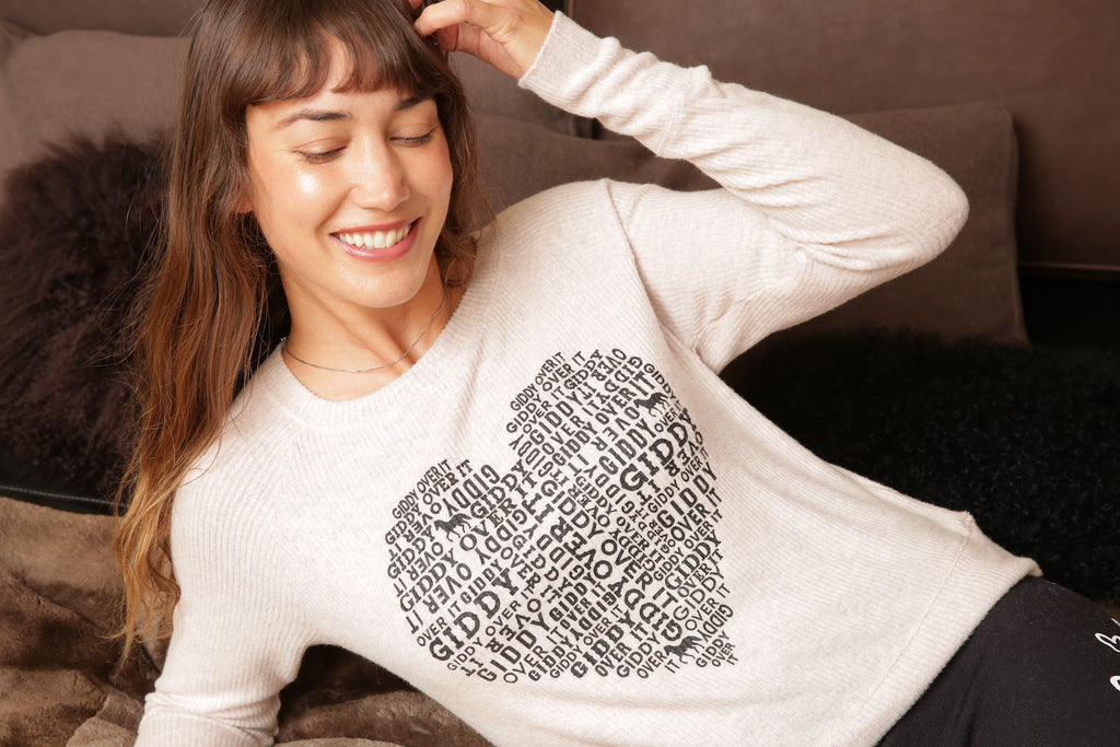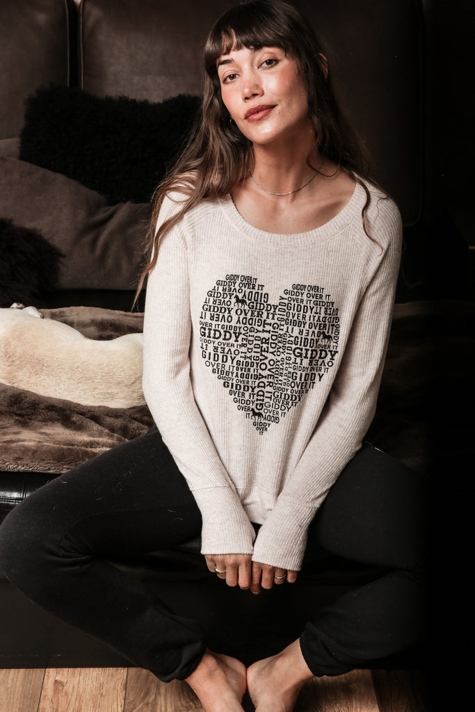 Giddy Over It Heart~ Crew Neck Long Sleeve Hacci Ribbed Lightweight Top