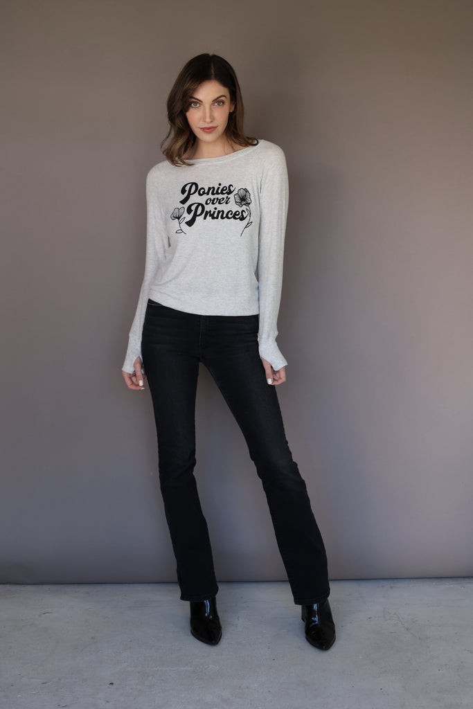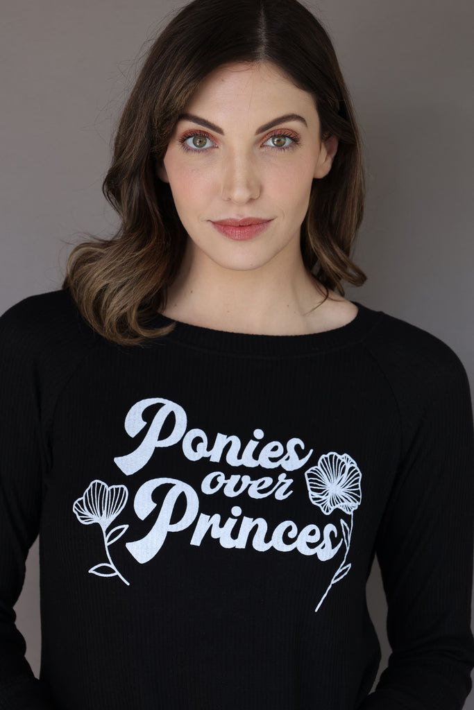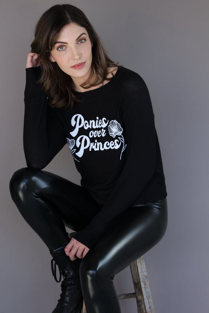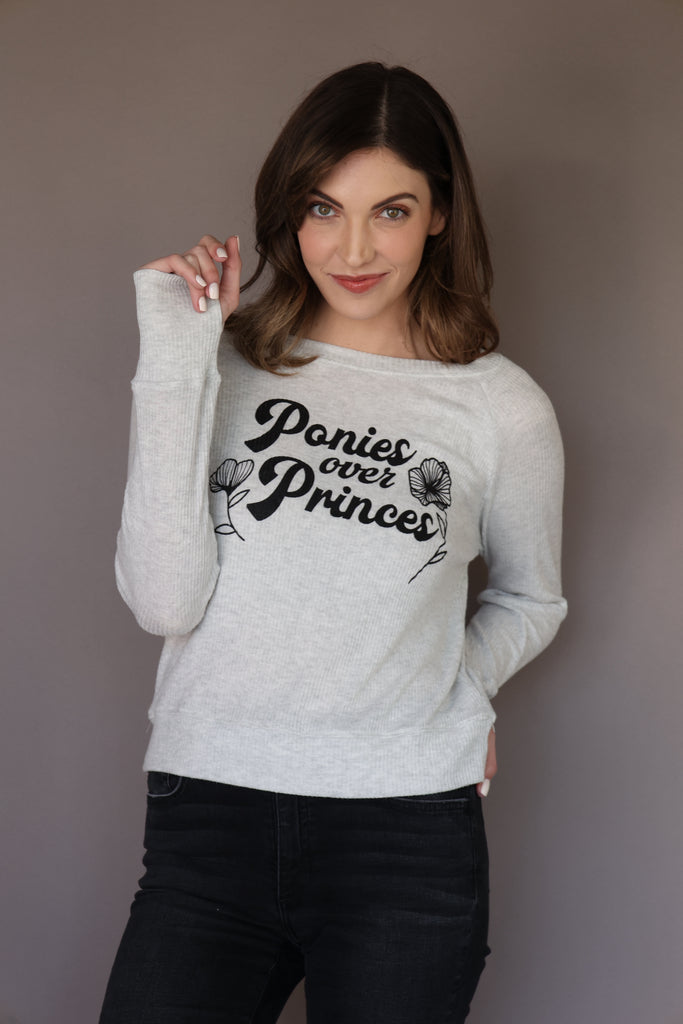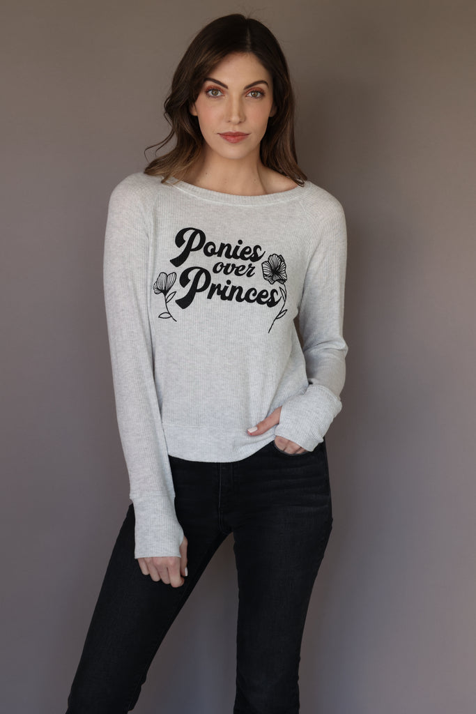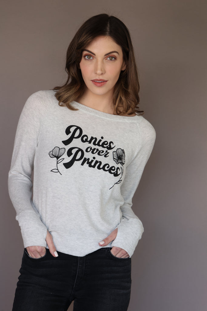 Ponies Over Princes ~ Crew Neck Long Sleeve Hacci Ribbed Lightweight Top