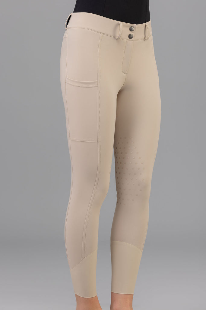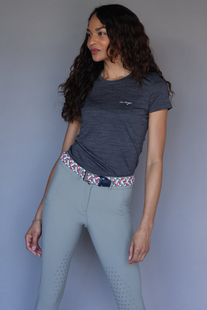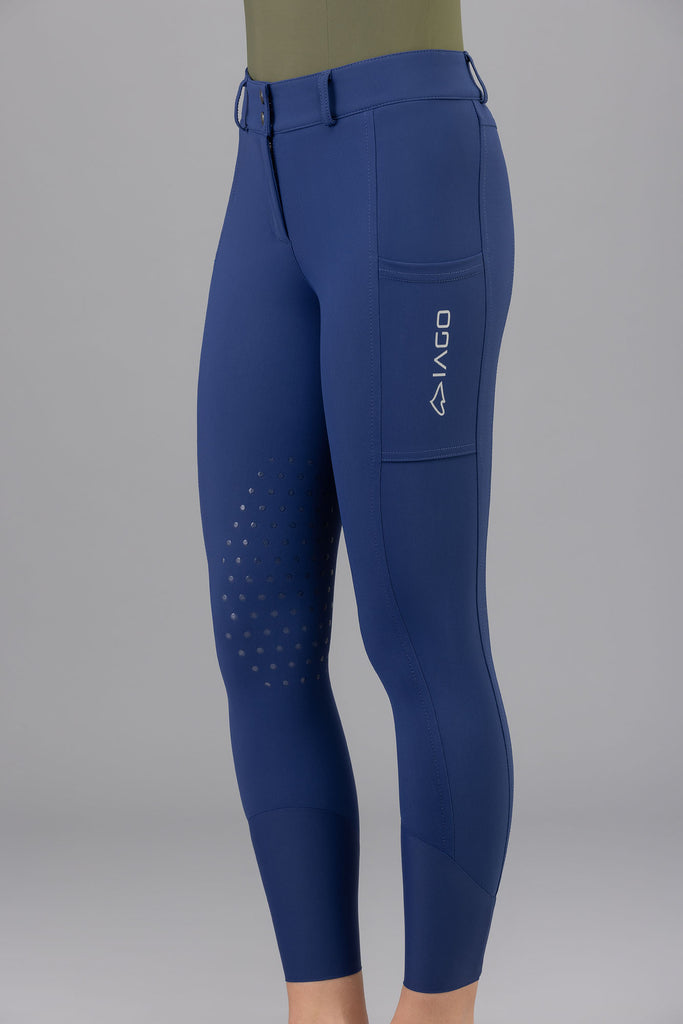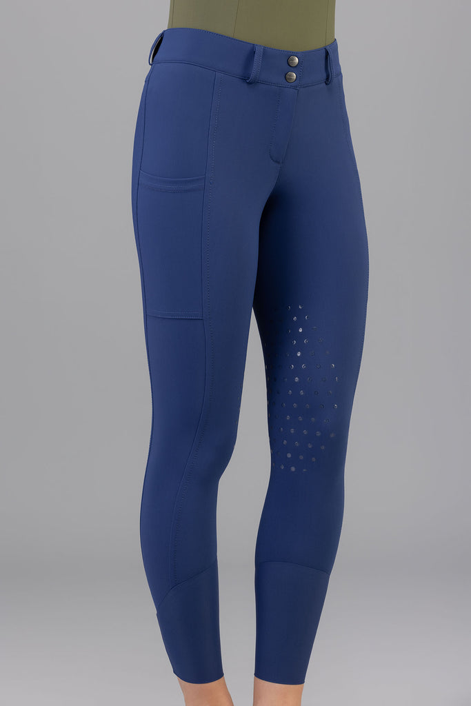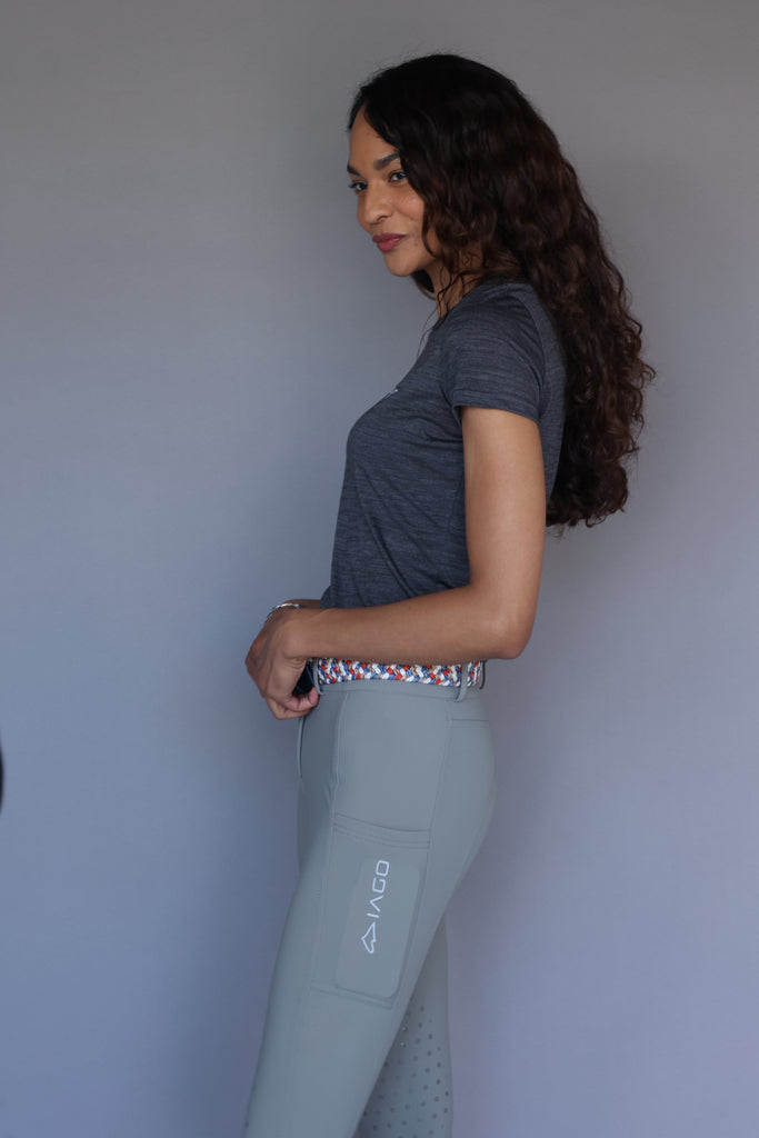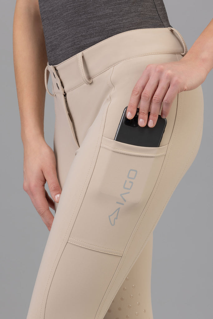 Made with the Superstretch extremely lightweight fabric, the Iago Bright will keep you feeling cool in the saddle and looking cool at the show grounds bar! The rise is mid-high, and fits over lots of shapes and sizes. The extra large cargo pockets are perfect for running around with your cell phone at the barn. The latex knee grip has a subtle design allowing for that extra stick.