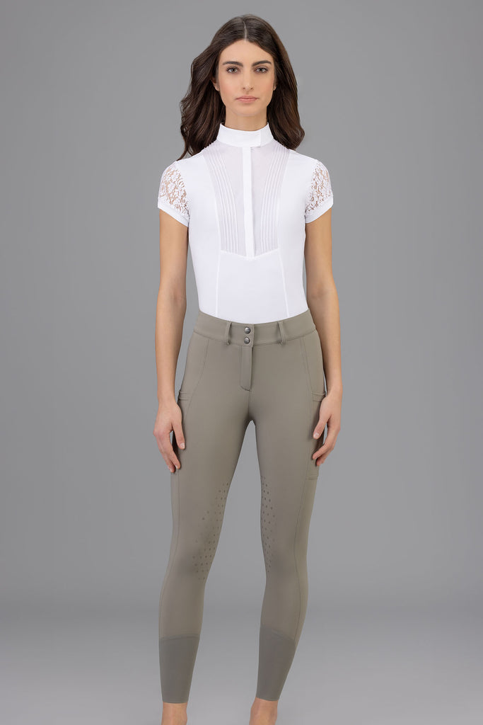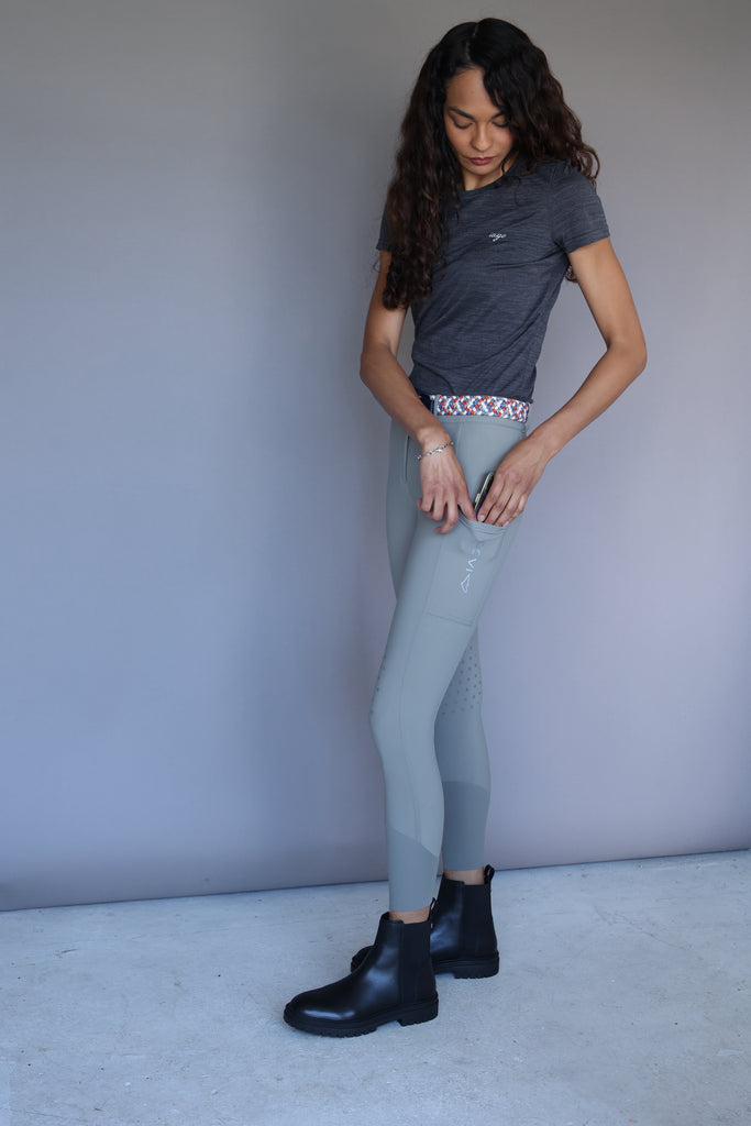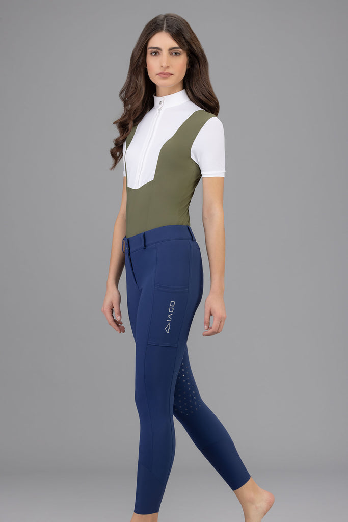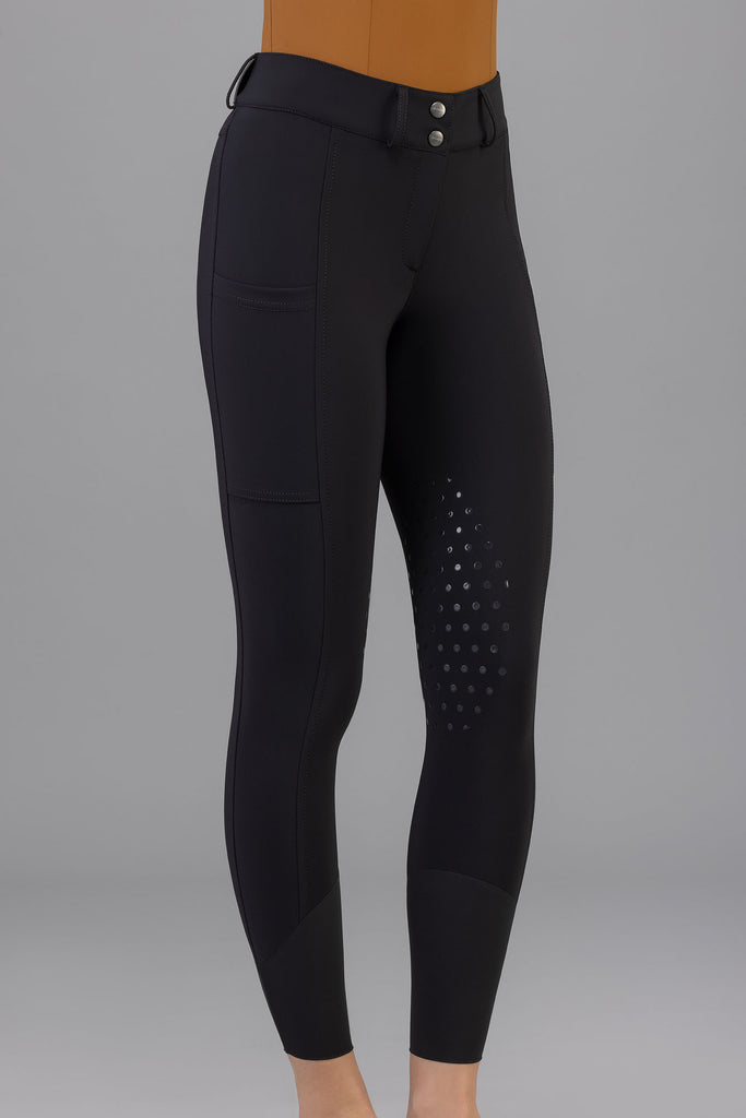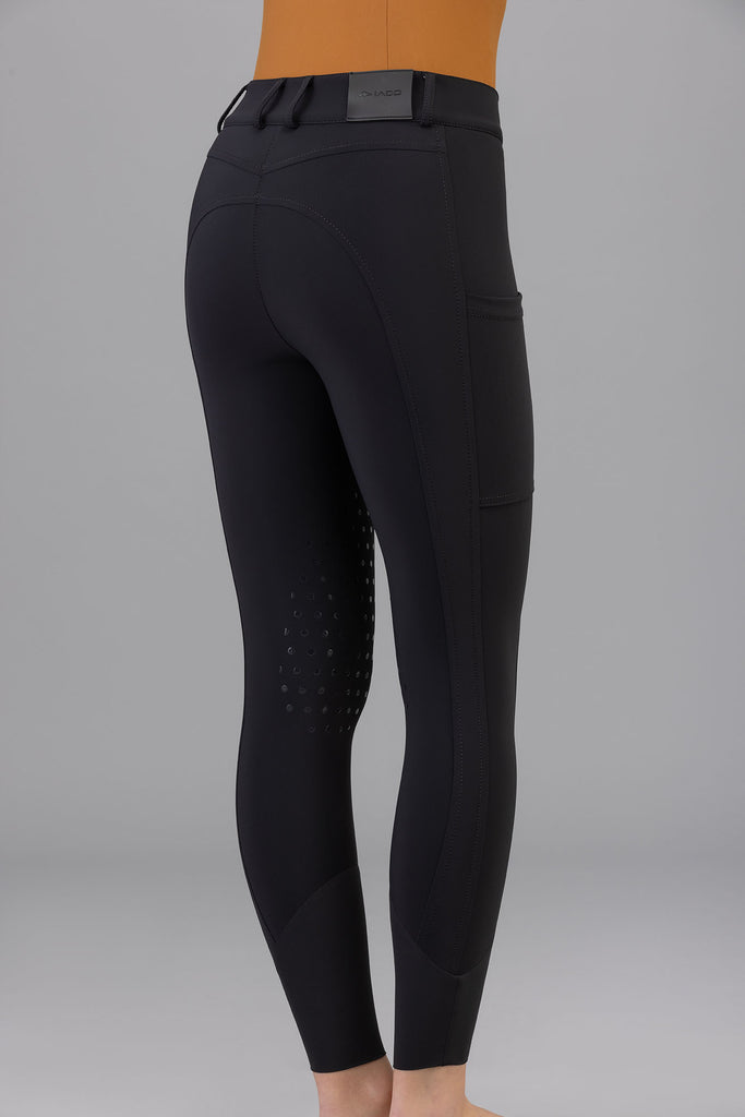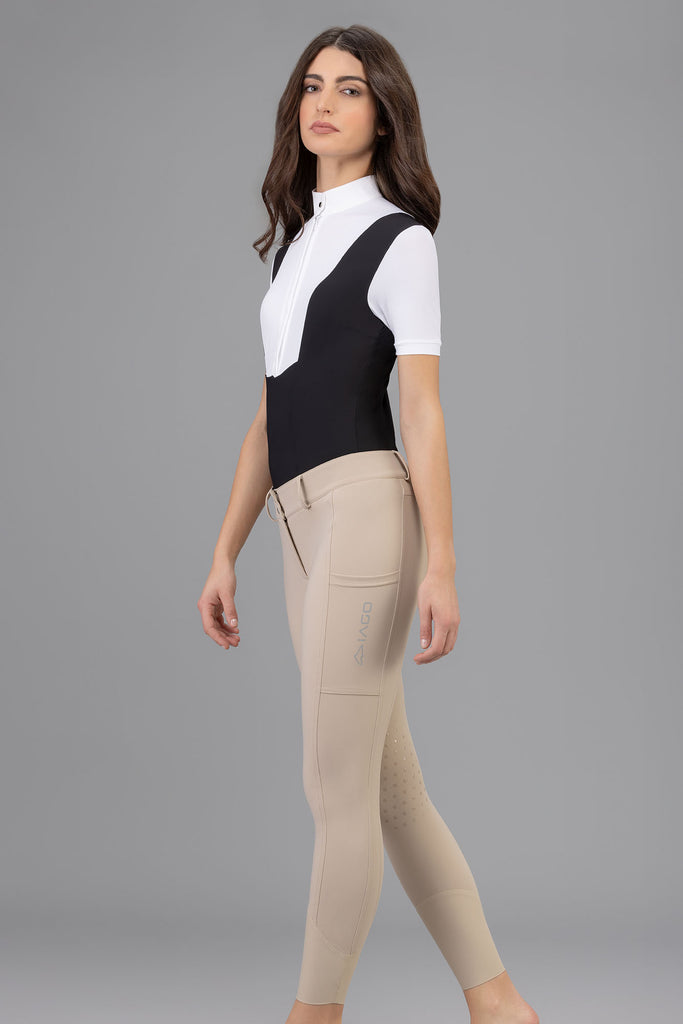 Made with the Superstretch extremely lightweight fabric, the Iago Bright will keep you feeling cool in the saddle and looking cool at the show grounds bar! The rise is mid-high, and fits over lots of shapes and sizes. The extra large cargo pockets are perfect for running around with your cell phone at the barn. The latex knee grip has a subtle design allowing for that extra stick.