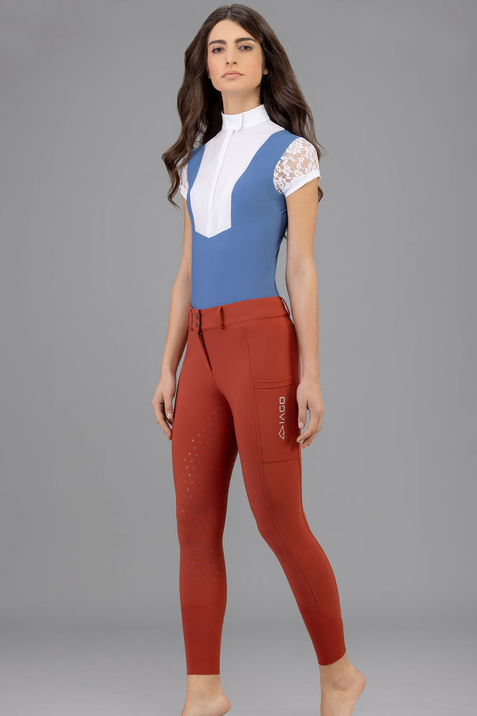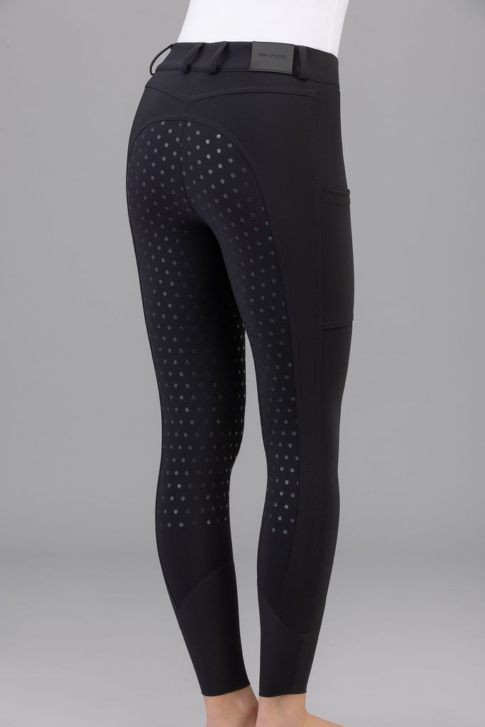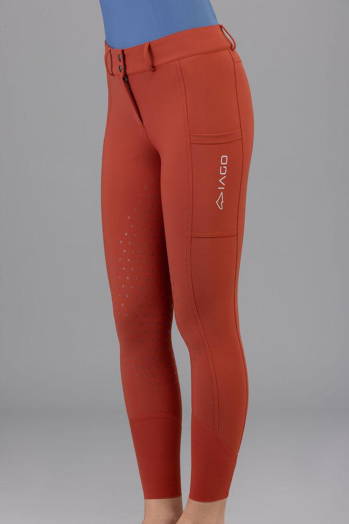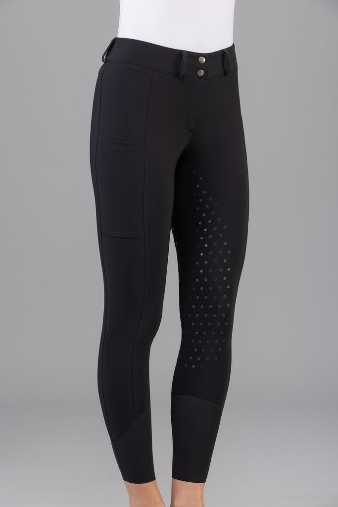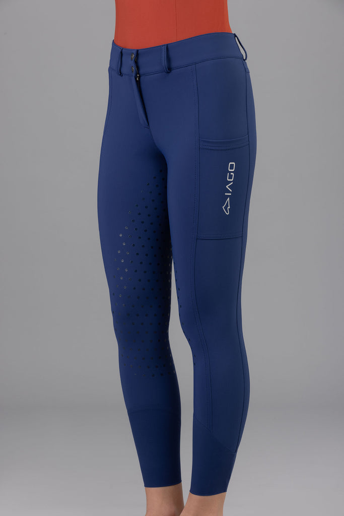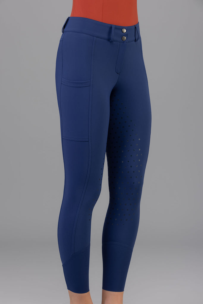 Made with the Superstretch extremely lightweight fabric, the Iago Bright will keep you feeling cool in the saddle and looking cool at the show grounds bar! The rise is mid-high, and fits over lots of shapes and sizes. The extra large cargo pockets are perfect for running around with your cell phone at the barn. The latex full grip has a subtle design allowing for that extra stick.
