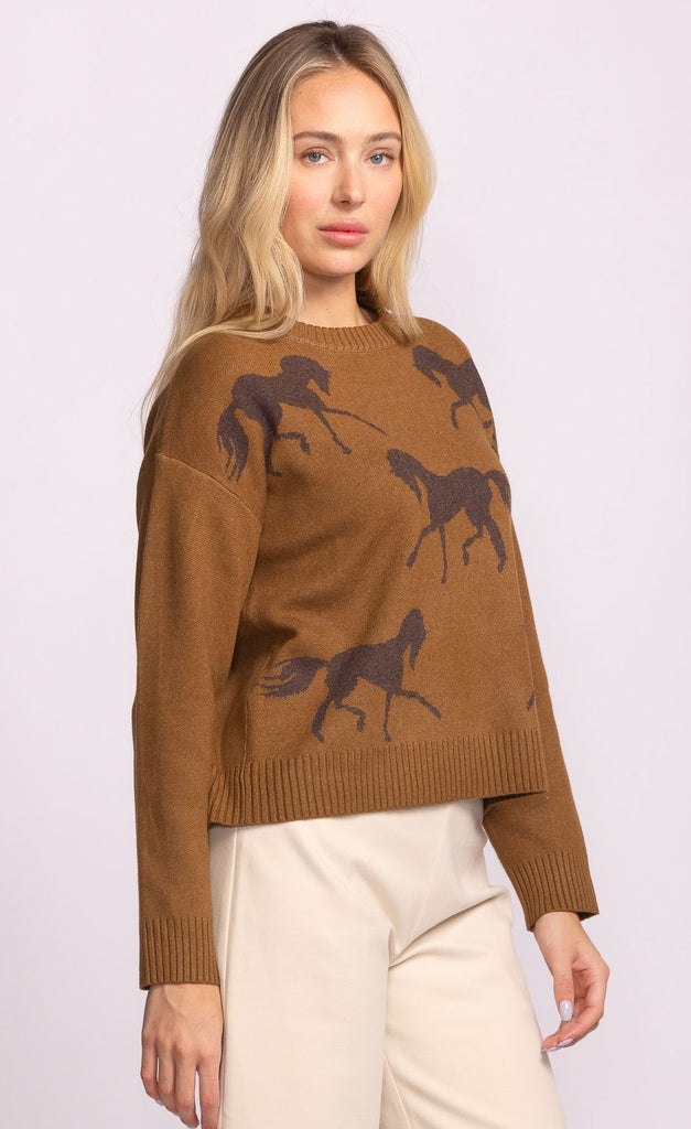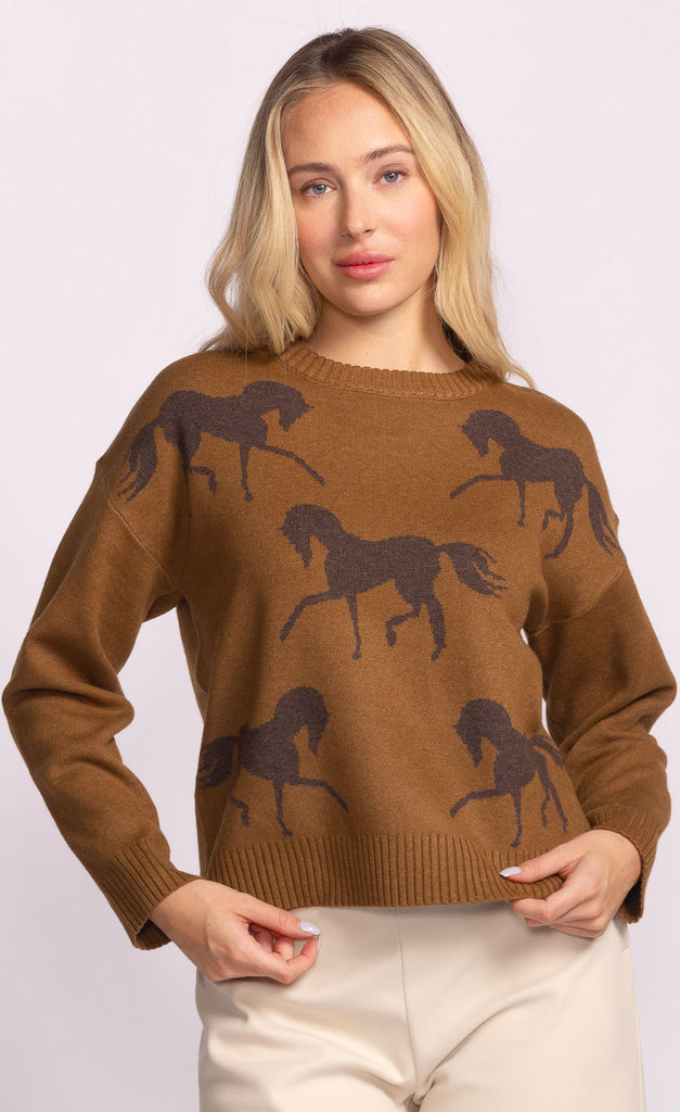This will be a seasonal best seller for sure! Super cute with jeans or a wide leg pant, the horse print is very much on trend and will be a knockout in your fall wardrobe.