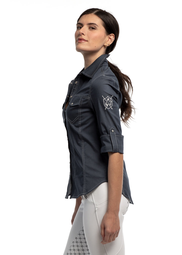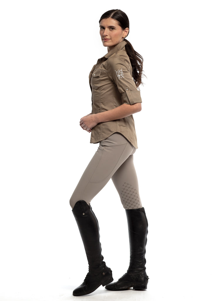 Ok Goode Rider keeps getting sexier! The Jean Shirt is an absolute essential this season. Riders across the country love wearing this for all their activities (trail rides, days out). It's a super stretchy cotton/spandex blend that looks great with any pair of tights or breeches